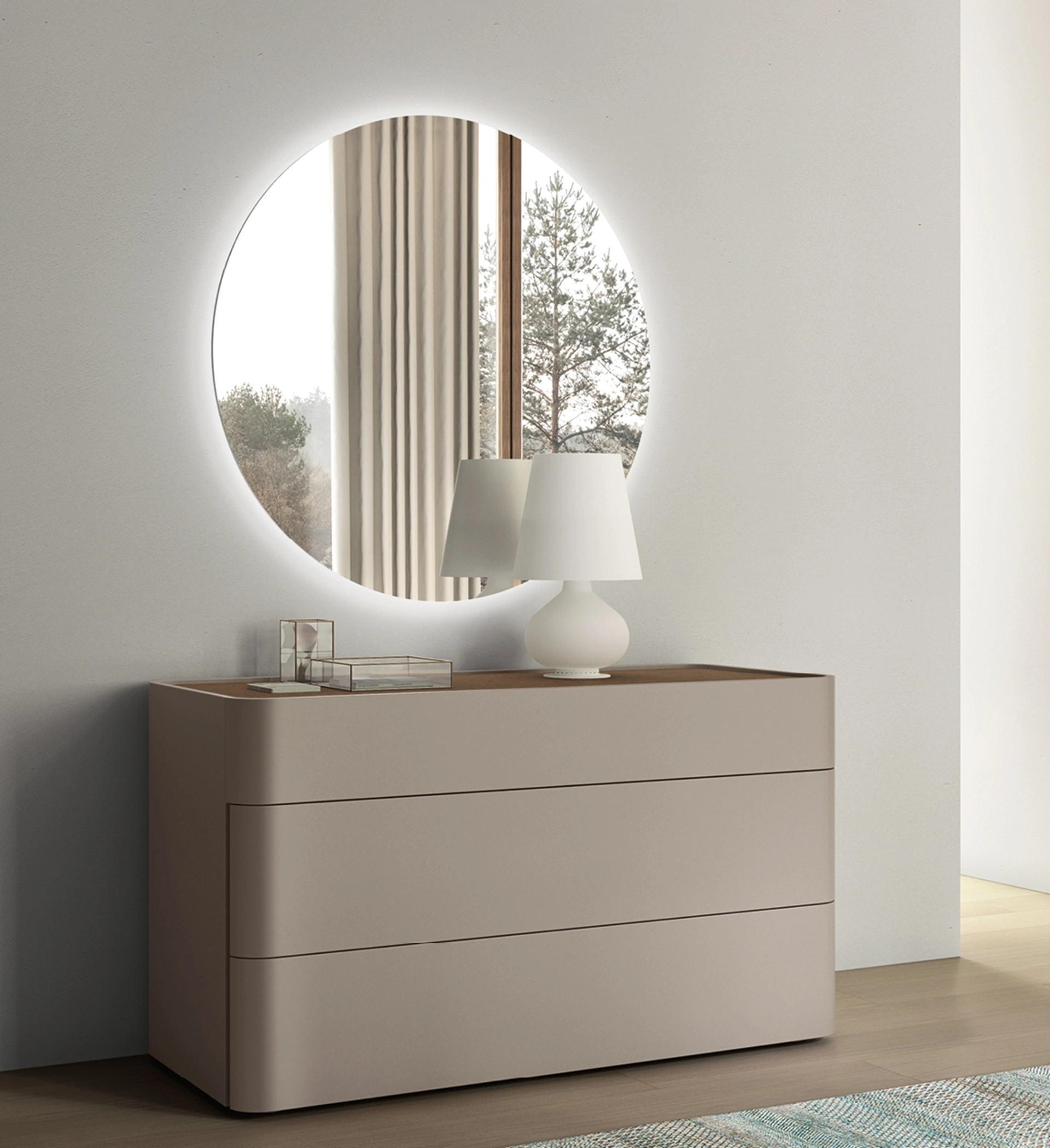 Assai versatili e multifunzionali, i Complementi moderni senza cornice svolgono funzioni diverse: ultimano le doti di praticità e il valore estetico dell'ambiente. Nel nostro showroom potrai visionare in prima persona la qualità dei modelli di specchi moderni senza cornice del brand, proprio come questa soluzione in foto. Le composizioni arredative di alto valore estetico del brand Maronese rendono belli gli interni con colore e gusto, ricreando peculiari atmosfere arredative. Specchiera con Led Tonda di Maronese senza cornice: aggiungerà carattere e fascino a un interno arredato con mobili e oggetti accessori dai richiami moderni.