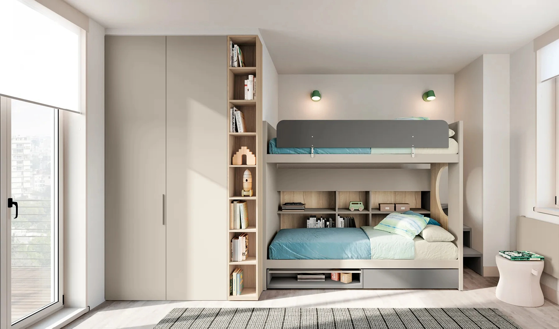 Porta valore estetico e cromie vivaci nella stanza dedicata ai più piccoli con questa proposta, una delle Camerette con letti a castello per bambine di Doimo Cityline. Nell'arredo della stanza dei giovani affidati a noi: nel nostro showroom presentiamo tutte le più belle composizioni arredative moderne per la loro camera. Doimo Cityline propone un ricco catalogo di elementi accessori da accostare su misura: troverai letto, armadio o cabina armadio, scrivania, sedie e librerie. Questa soluzione in laccato opaco ultima alla perfezione le doti di praticità e l'estetica della camaretta, poiché è capace di abbinare funzionalità ed ergonomia.