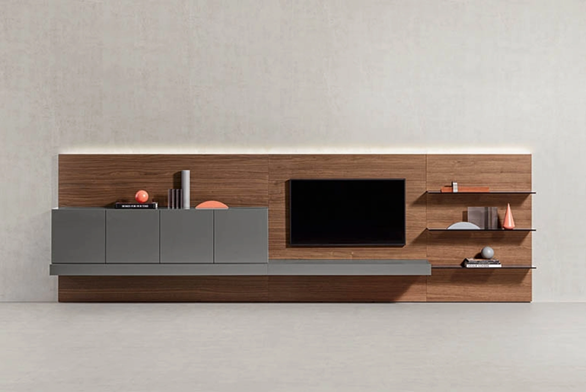 Questa soluzione rappresenta tutta l'eccellenza che il brand garantisce grazie a pluriennale competenza e grande passione nel settore dell'arredo e del design. La Parete Attrezzata People in laccato Cenere di Pianca nell'immagine, con finitura in laccato opaco, risolve le più personali esigenze abitative di spazio e stile senza rinunciare alla ricerca estetica. Se cerchi mobili salvaspazio e realizzabili su misura, contattaci e ottieni informazioni sull'Arredamento Casa delle migliori marche. Un po’ librerie, un po’ mobili contenitori ed espositori: le Pareti Attrezzate sono ideali per arredare un luogo operativo e pratico.