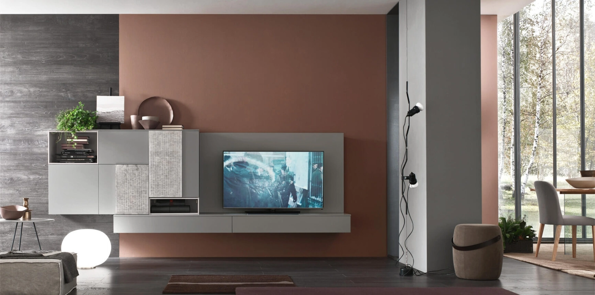 Questa parete attrezzata è una delle soluzioni della marca e ti consentirà di progettare il soggiorno secondo le più particolari problematiche abitative. Le Pareti Attrezzate hanno conquistato un posto di primo piano nella zona giorno delle nostre case: sono mobili plurifunzionali e salvaspazio sempre realizzabili su misura. Attraverso un gioco dinamico di accostamenti fra componenti a giorno o vani chiusi, le Pareti Attrezzate moderne arredano il soggiorno ottimizzando ogni spazio.