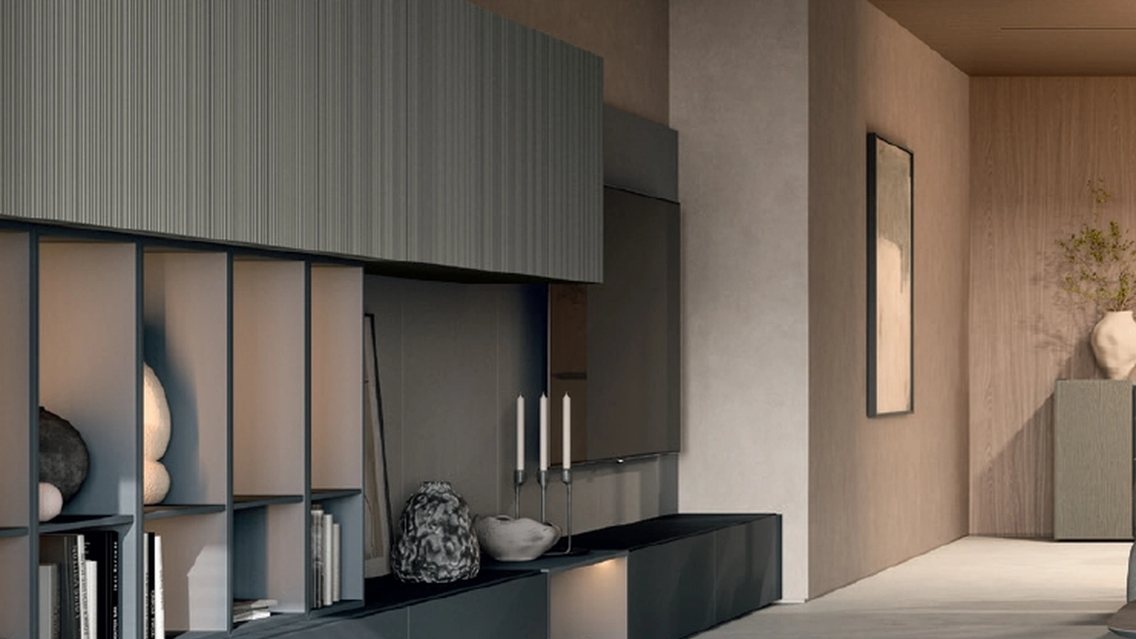 La Parete Attrezzata Slim Grigio Antracite di Dall'Agnese nella fotografia possiede grandi doti di componibilità e varie possibilità di caratterizzazione: scopri la parete attrezzata qui disponibile e contattaci per maggiori info e preventivi. Per soddisfare le eterogenee esigenze abitative di ciascuno, brand mette a disposizione dei suoi clienti un ricco catalogo Pareti Attrezzate moderne assai funzionali e contraddistinte da un tocco di stile. Impreziosisci i tuoi interni con le Pareti Attrezzate moderne di Dall'Agnese: nel nostro punto vendita troverai mobili e complementi di design, in materiali di qualità e dei migliori brand.