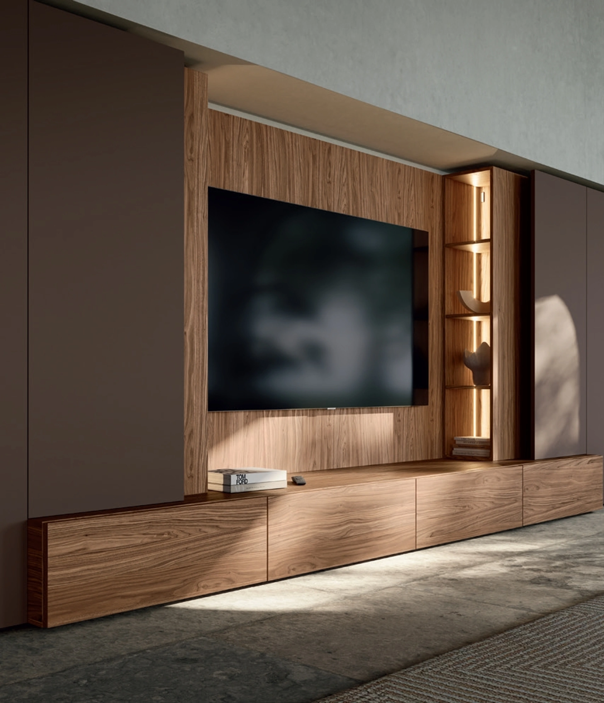 Attraverso un gioco dinamico di accostamenti fra componenti a giorno o vani chiusi, le Pareti Attrezzate moderne arredano il soggiorno valorizzando ogni spazio. Le Pareti Attrezzate hanno assunto un posto importante nella zona giorno delle nostre case: sono mobili plurifunzionali e salvaspazio sempre realizzabili su misura per te. Questa parete attrezzata è una delle soluzioni del brand e ti consentirà di allestire il living seguendo le più personali esigenze abitative.
