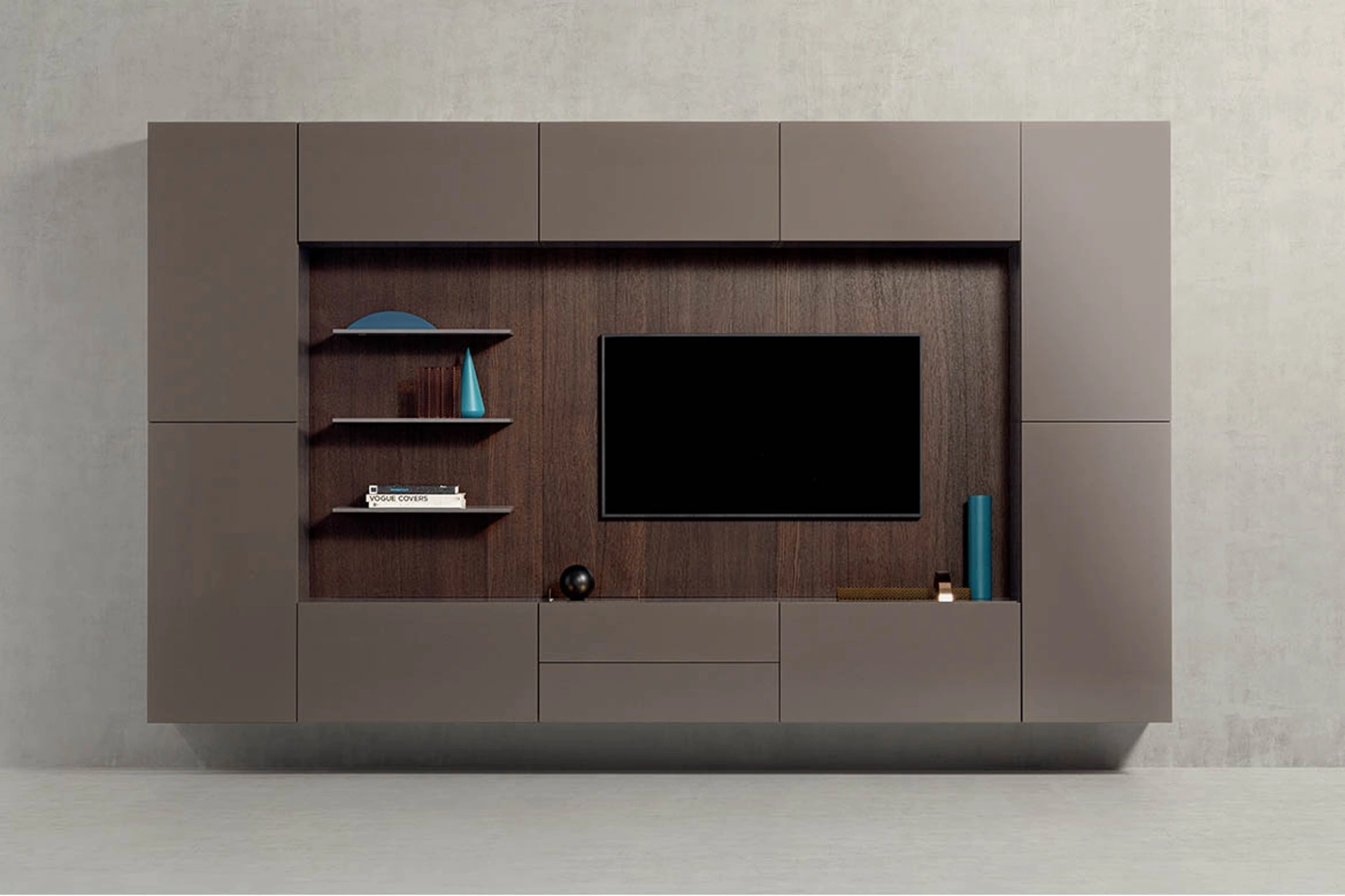 La Parete Attrezzata sospesa Spazio in Laccato Fango di Pianca nell'immagine è una tra le più belle soluzioni d’arredo sul mercato: componibilità su misura e le diverse opportunità di progettazione la rendono pratica e sofisticata. Pianca mette a disposizione inediti modelli di mobili soggiorno, diversi per stile e forme, texture e componenti: scopri nel nostro punto vendita l'Arredamento Casa delle migliori marche. Lasciati stuzzicare da un ricco catalogo di arredi per la zona giorno e potrai trovare la parete attrezzata che fa per te. I mobili soggiorno in laccato opaco dalle linee moderne come il modello nell'immagine sono veramente eclettici e capaci di allestire il living sfruttando bene ogni angolo.